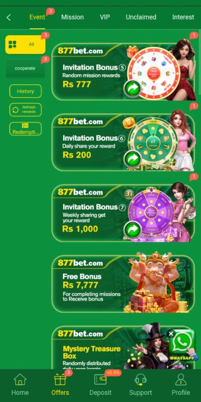 One of the coolest things about 877bet is the way you can get additional money. You just have to send invitations to your friends and if they join and do tasks you get referral earnings. It’s very easy and transparent and of course you get more rewards.