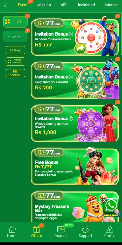 Rather than relying on luck, HD77 emphasize on earning through skill-base challenges. It is your effort and regularity that determine your rewards.