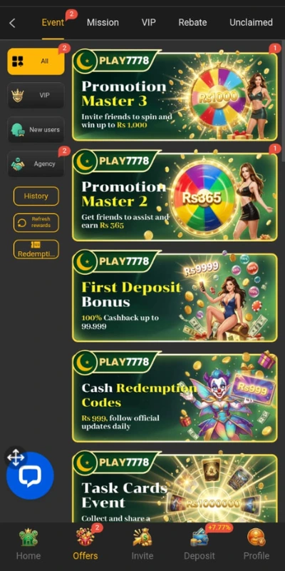 You will receive a welcome bonus from PLAY7778 Game when you firstly download the app. This is going to be your fuel to the journey with motivation: Seeing your very first rewards pretty much achieved without effort feels good. It makes new users want to check out more features.